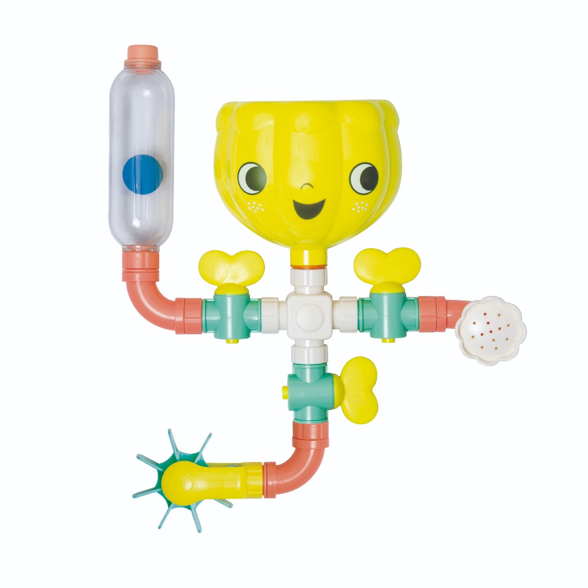 Badelegetøjet her er oplagt til din lille vvs'er og til børn, der ikke er helt overbevist om, at det er sjovt at komme i bad og få mulighed for at plaske. Her kan I udforske vandkraft og vandets veje, når I åbner og lukker for banens ventiler. Hæld vand i den glade tragt og se, hvor vandet ender. Hvor skal I skrue på for eksempelvis at få vandet op i beholderen med den blå bold eller hen til møllen? Plask, hov nu strømmer vandet ud af vandkandebruseren.Ryk rundt på delene og se, hvordan vandet nu arter sig.11 dele i alt. Sidder fast med sugekopper.Hvordan er det nu med hygiejne og kemi i badelegetøj? Læs om det her i vores guide til ren leg i badet.