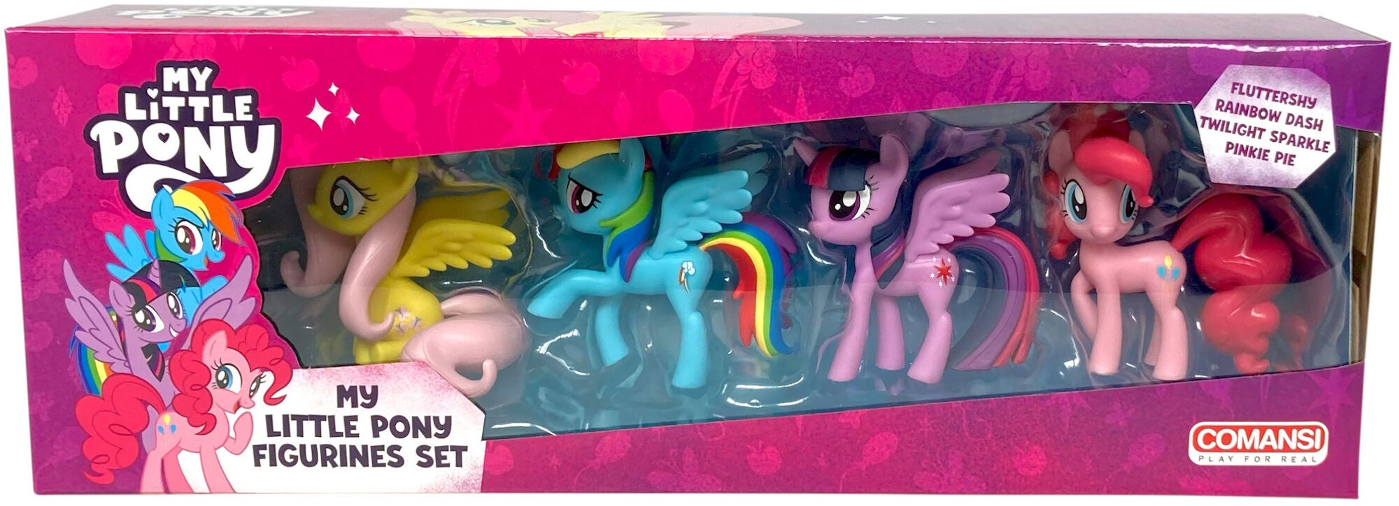 Figursæt fra My Little Pony med alle hovedroller fra den populære serie. I denne pakke finder du Fluttershy, Rainbow Dash, Twilight Sparkle og Pinkie Pie. Der medfølger 4 figurer. CE-mærket. Anbefalet alder: Fra 3 år.