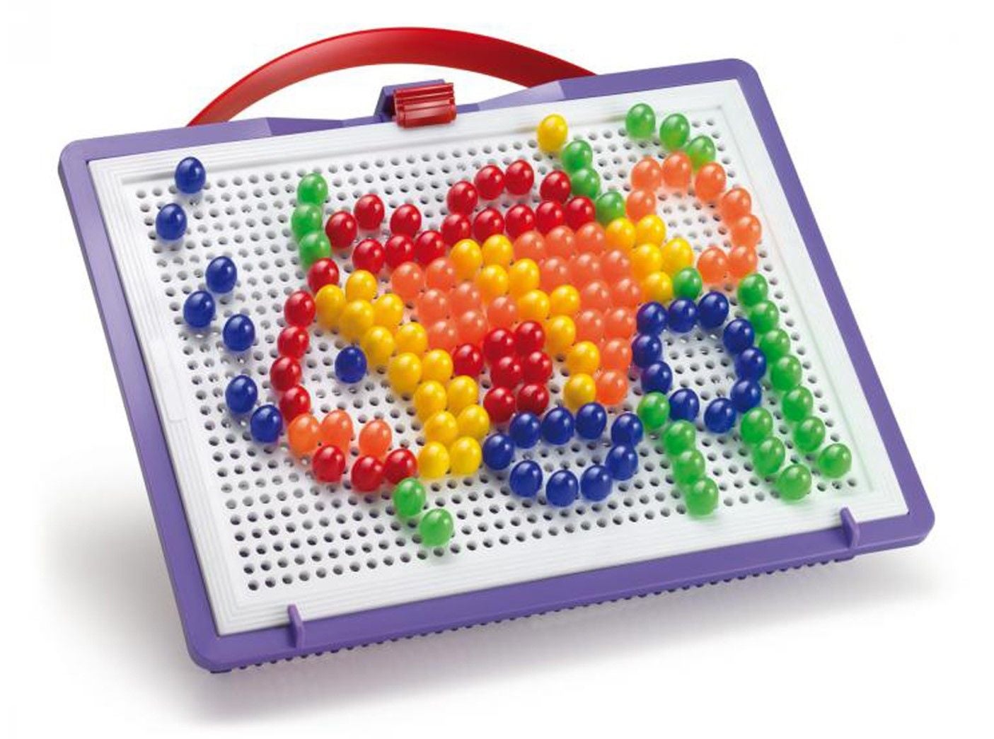 Sjov stifttavle fra Quercett man kan tage med sig som en taske. Slip fantasien løs og skab mønstre med de farverige stifter. Når du har leget færdigt, kan du opbevare stifterne i tasken. Taskens håndtag gør det også muligt at hænge tavlen op på væggen. Der er hele 150 stifter og flere mønstre man kan bruge som inspiration. Anbefalet alder: Fra 3 år.