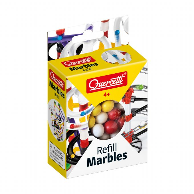 100 kugler med en diameter på 14 mm. i forskellige farver. Velegnet til Quercettis fantastiske Migoga Run serie af kuglebaner. Rengøres med en fugtig klud eller med lidt rengøringsmiddel, herefter lufttørres produktet. Må ikke nedsænkes i vand
