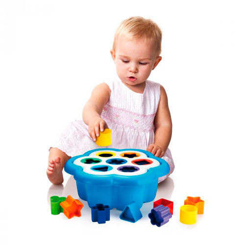 En tidløs klassiker i et opdateret designSelve basen er udformet som en blomst, der giver barnet gode muligheder for at holde fat i den og gå med den. i låget er der 7 huller med hver sin form og farve, tilsvarende har klodserne den samme form og farve hvor den skal igennem, din lille vil hurtigt lære at genkende hvad der påasser sammen og finde stor glæde når den dumper ned i kassen.I legen styrkes deres hånd-øje koordination, samt deres tidlige motorik og fingerfærdighed. Alt kan vaskes i lunt sæbevand hvis dit barn har smagt lidt på sagerne.Sættet består af:2 lyseblå trekantede blokke2 lilla blomst-formet blokke2 røde firkantede blokke2 Orange stjerneformede blokke2 grønne kløver-formede blokke2 gule cylindriske blokke2 blå kors-formede blokke1 låg med 7 huller i forskellige farver1 spand