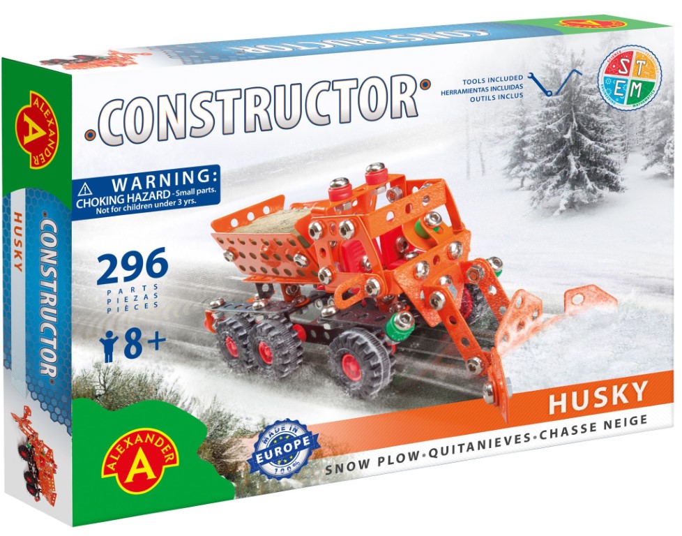 Mød Husky! Den hurtigste sneplov på isen! *Constructor* er en serie med et stort udvalg af forskellige byggesæt med metaldele i mange flotte farver! Byg figurerne på pakken, eller kombiner flere sæt og slip fantasien løs! Aldersgruppe: +8 år