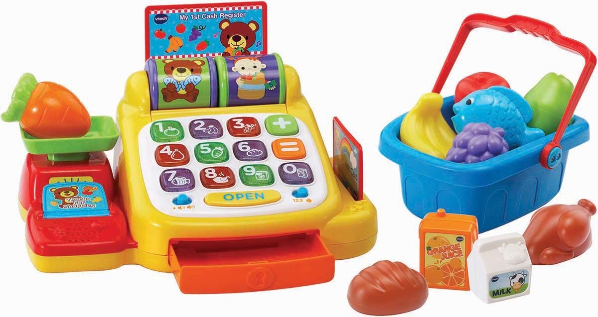 Et sjovt kasseapparat fra Vtech. Kassen er udstyret med en tilhørende kurv, der indeholder madvarer samt en vægt, som man kan veje varerne på. Legetøjet opmuntrer til en sund livsstil og har mange sjove melodier, som man kan nynne med på. Apparatet introducerer farver, mad og tal på en sjov og interaktiv måde. Anbefalet alder: Fra 2 år.