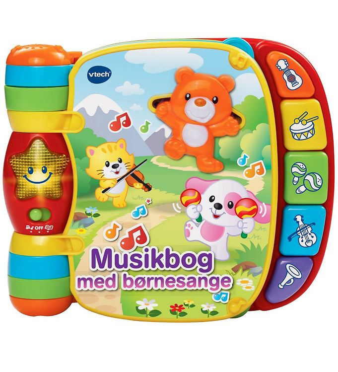 Vtech Bog m. Lyd - Dansk - Musikbog Med Børnesange er den perfekte gave til små musikelskere! Denne interaktive bog er designet til at engagere og underholde dit barn, samtidig med at den styrker deres sprogkundskaber og musikforståelse.