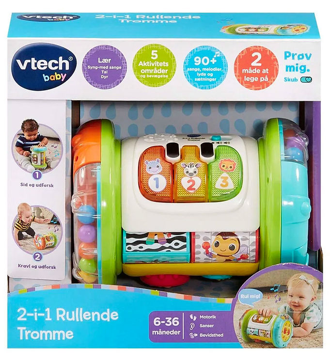 Vtech, en førende producent af aktivitetslegetøj, garanterer kvalitet og sikkerhed i hvert produkt. Med denne rullende tromme får dit barn ikke kun en sjov legetøjsoplevelse, men også et redskab til tidlig udvikling. Bestil i dag og giv dit barn en verden af læring og leg.