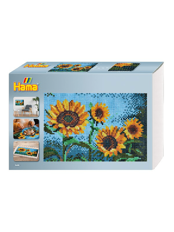 Hama Art Midi Solsikker Her kan du lave dit eget maleri af flotte perler. Når først perlepladen er strøget er det kun fantasien der sætter grænser for, hvad man kan bruge dette flotte maleri til. Man kan f.eks. bruge det som en dækkeserviet eller hænge de