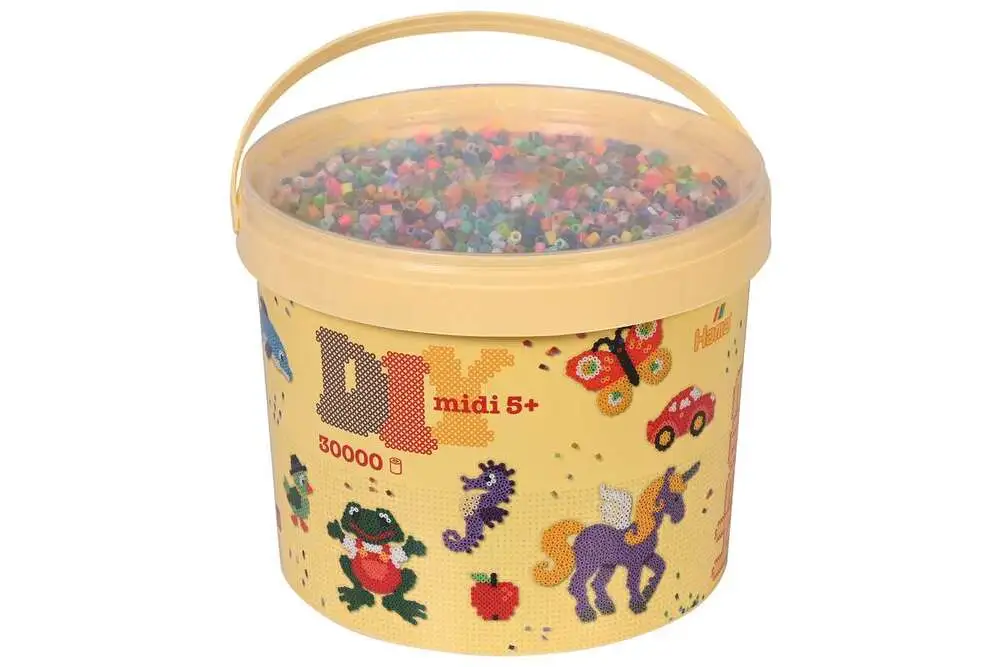 Mix af 30.000stk. midi perler til strygning eller syning af motiver.  Mix 68 består af flg. farver: nr. 01..22, 24, 26..38, 42..49, 60, 70..79, 82..84, 95..98, 101..107. Kommer i spand med låg størrelse Ø23 x 18,5cm.