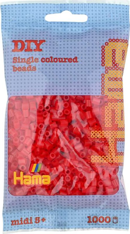 Hama Midi Perler 1000 stk - 207-13 indeholder ca. 1.000 perler i en transparant rød farve. Disse...
