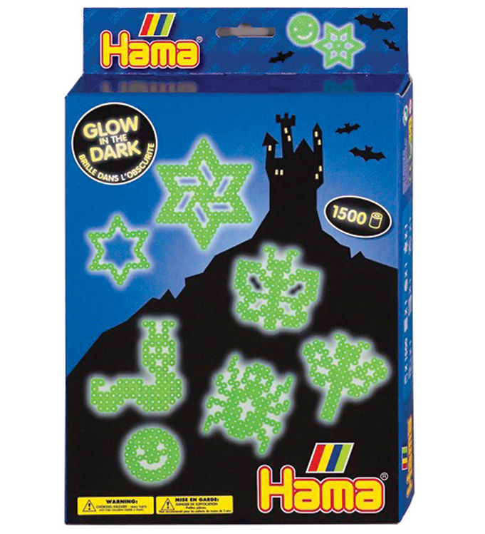 • 1500 Hama midi perler i forskellige farver, herunder glow in the dark.