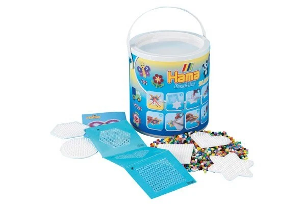 Hama midi perler, stiftplader og selvklæb i bøtte