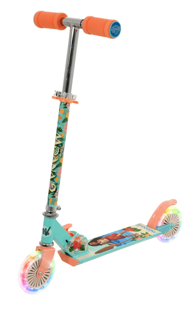 Bliv en eventyrlysten vejfinder og tag på spændende rejser med Moana 2 sammenklappelig løbehjul med lysende hjul. Kør med stil på det karakterprintede, skridsikre dæk og fuldt indpakkede styr, officielt licenseret for et strejf af magi. Løbehjulet er bygg