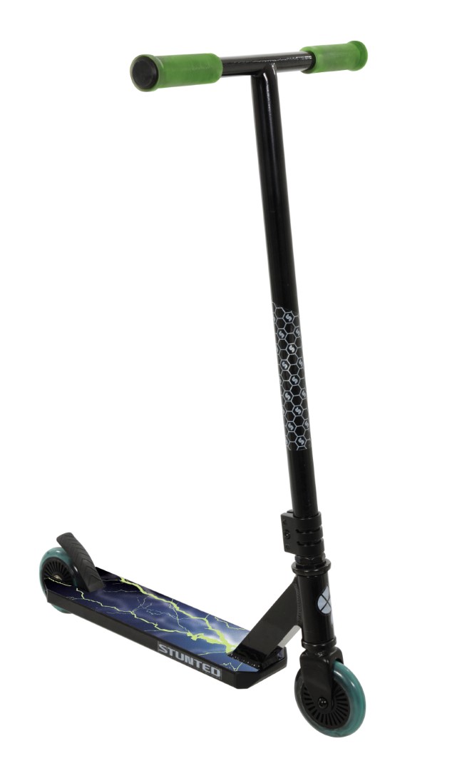 Træd ind i stuntløbehjulens verden med Stunted Glowstorm Pro - glow in the dark stuntløbehjul! Med en mat sort finish og kontrasterende selvlysende elementer, er dette løbehjul helt sikkert noget, der vil tiltrække opmærksomhed! Dette løbehjul er ideelt f