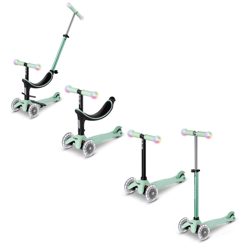 Micro Mini2grow Deluxe Magic LED i en lækker mintgrøn farve kombinerer sjov og sikkerhed for dit barn. Dette innovative løbehjul er designet til børn fra 1 til 6 år og har dynamo-LED-lys i både hjulene og styret, hvilket ikke blot gør det sjovt, men også sikrer ekstra synlighed i mørke. Med et aftageligt sæde og forældrestang kan du tilpasse køretøjet, så det vokser med dit barn. Det justerbare styr (45-79 cm) og muligheden for at skifte mellem en løbecykel og et klassisk løbehjul gør det ideelt til både de mindste og større børn. Løbehjulet har skridsikre dæk og en bremse på baghjulet for optimal sikkerhed, mens de farverige LED-hjul lyser op uden batteri. Med en maksimal belastning på 50 kg er dette løbehjul robust og holdbart. Det vejer mellem 2,2 og 3,5 kg afhængig af indstillingen, hvilket gør det let at transportere. Micro Mini2grow Deluxe Magic LED understøtter dit barns grovmotorik, kondition og muskel-ledssans, hvilket er afgørende for deres trivsel og udvikling. Det er en perfekt forberedelse til at lære at cykle med pedaler og giver dit barn frihed til at udforske verden på en sjov og sikker måde. Gør det til en del af dit barns leg i dag!
