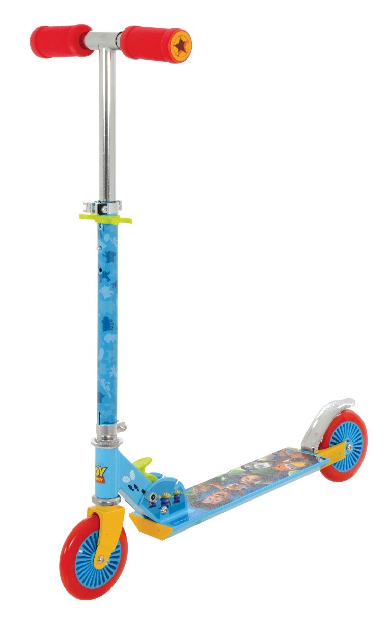Foldbart løbehjul. Farverig skridsikre fodplade Kan nemt foldes sammen til opbevaring eller transport Bag fodbremse Justerbar styr 74 - 80 cm Klar til at køre - ingen samling nødvendig