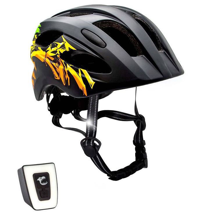 Crazy Safety Cykelhjelm m. Lys - Grafitti - Sort/Gul