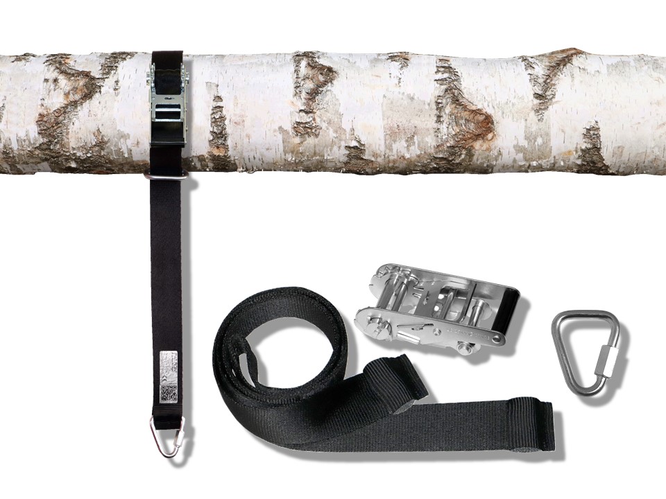 Gynger, hængekøjer, romerringe, sansegynger og trapez'er er geniale både til afslapning og leg. At hænge dem op kan være lidt mindre morsomt og nogle gange kræve en mindre maskinpark og mere end ti tommelfingre. Nu har vi den glædelige nyhed, at gyngeophæng i træer fra nu af ikke behøver tage mere end 5 minutter. Selv følsomme træer, som du helst ikke vil ødelægge barken på, kan du nu hænge en gynge, en hængekøjestol eller andre hængende former for indretninger på. Det kræver kun en svensknøgle til skruen og bolten. Du skal ikke bore, og du skal heller ikke være nervøs for, om ophænget nu holder. Dette ophæng er nemlig lige til at tage ud af pakken, føre rundt om en træstamme og lukke med spændet.Karabinhagen og spændet er ultrastærkt, så det eneste, du skal være sikker på, er at træstammen eller grenen er stærk nok til at bære belastningen. Tag ophænget med i skoven, hvis I vil have mulighed for en gyngetur på farten. Brug ophænget til nemt ophæng af gynger, trapez'er eller andre svingende legesager i træer eller runde pæle.Kan bære en elefant, hvis der skulle være sådan en i jeres have, og hvis den skulle have lyst til en gynge tur. Op til 2000 kg kan dette ophæng klare.Ingen syninger, alt er vævet sammen. UV- og vejrbestandigt.Der er 1 stk i pakken, så til de fleste gynger og lignende skal du bruge to stk. Denne variant har en line på 100 cm.