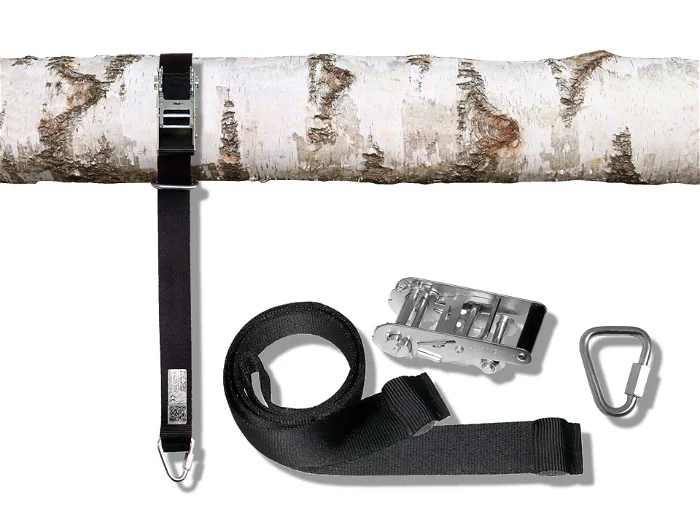 Gynger, hængekøjer, romerringe, sansegynger og trapez'er er geniale både til afslapning og leg. At hænge dem op kan være lidt mindre morsomt og nogle gange kræve en mindre maskinpark og mere en ti tommelfingre. Nu har vi den glædelige nyhed, at gyngeophæng i træer fra nu af ikke behøver tage mere end 5 minutter. Selv følsomme træer, som du helst ikke vil ødelægge barken på, kan du nu hænge en gynge, en hængekøjestol eller andre hængende former for indretninger på i. Det kræver kun en svensknøgle til skruen og bolten. Du skal ikke bore, og du skal heller ikke være nervøs for, om ophænget nu holder. Dette ophæng er nemlig lige til at tage ud af pakken, føre rundt om en træstamme, lukke med spændet og er der gyngetur. Karabinhagen og spændet er ultrastærkt, så det eneste, du skal være sikker på, er at grenen er stærk nok til at bære belastningen. Tag ophænget med i skoven, hvis I vil have mulighed for en gyngetur på farten. Brug ophænget til nemt ophæng af gynger, trapez'er eller andre svingende legesager i træer eller runde pæle.Kan bære en elefantunge, hvis der skulle være sådan en i jeres have, og hvis den skulle have lyst til en gynge tur. Op til 2000 kg kan dette ophæng klare.Ingen syninger, alt er vævet sammen. UV- og vejrbestandigt.Med patenteret solid lås.Der er 1 stk i pakken, så til de fleste gynger og lignende skal du bruge to stk. Denne variant har en line på 400 cm.