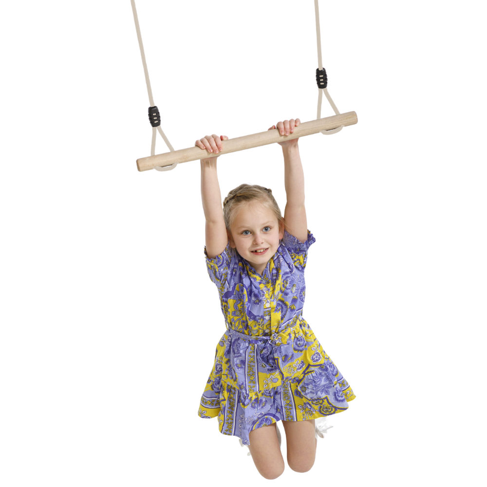 En trapez i træ giver mulighed for timevis af sjov med akrobatiske sving og øvelser. Rebene er justerbare, så trapezen kan bruges på gyngestativer op til 250 cm i højden.Specifikationer:Trapezstang i hårdt træBehandlet med et kobberbaseret produkt godkendt til udendørs brug - ikke til brug indendørsReblængde: 80-130 cmBeige flettet reb, blødt at holde vedVejrbestandige og slidstærke materialerPlastikforstærkninger ved svejsningerRing og justeringsspænder i galvaniseret stålMaksimal belastning: 70 kg