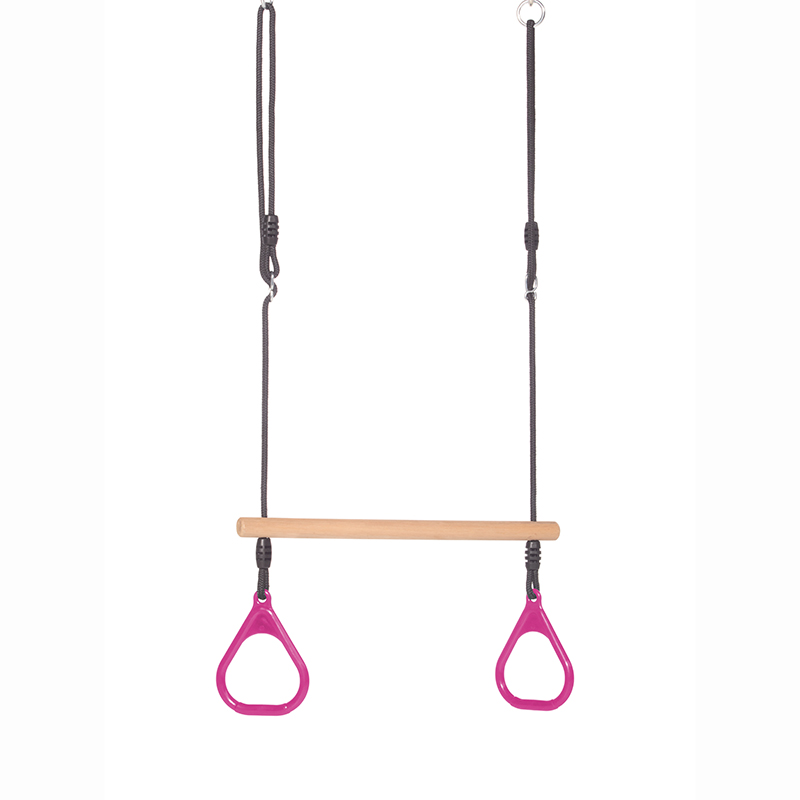 Denne trapez kombinerer en klassisk trapez af træ med plastringe, så dit barn kan svinge, hænge og lege på flere måder. Rebene kan justeres i højden, så trapezen passer til gyngestativer op til 250 cm.Specifikationer:Trapezstang af hårdt træ behandlet med et kobberbaseret produktBehandlet og godkendt til udendørs brug - ikke til brug indendørsPlastringe i antracitfarveJusterbare reb: 80-130 cmSort flettet reb, som er blødt at holde omVejrbestandige og slidstærke materialerPlastikforstærkninger ved svejsningerRing og justeringsspænder af galvaniseret stålMax belastning 70 kg.
