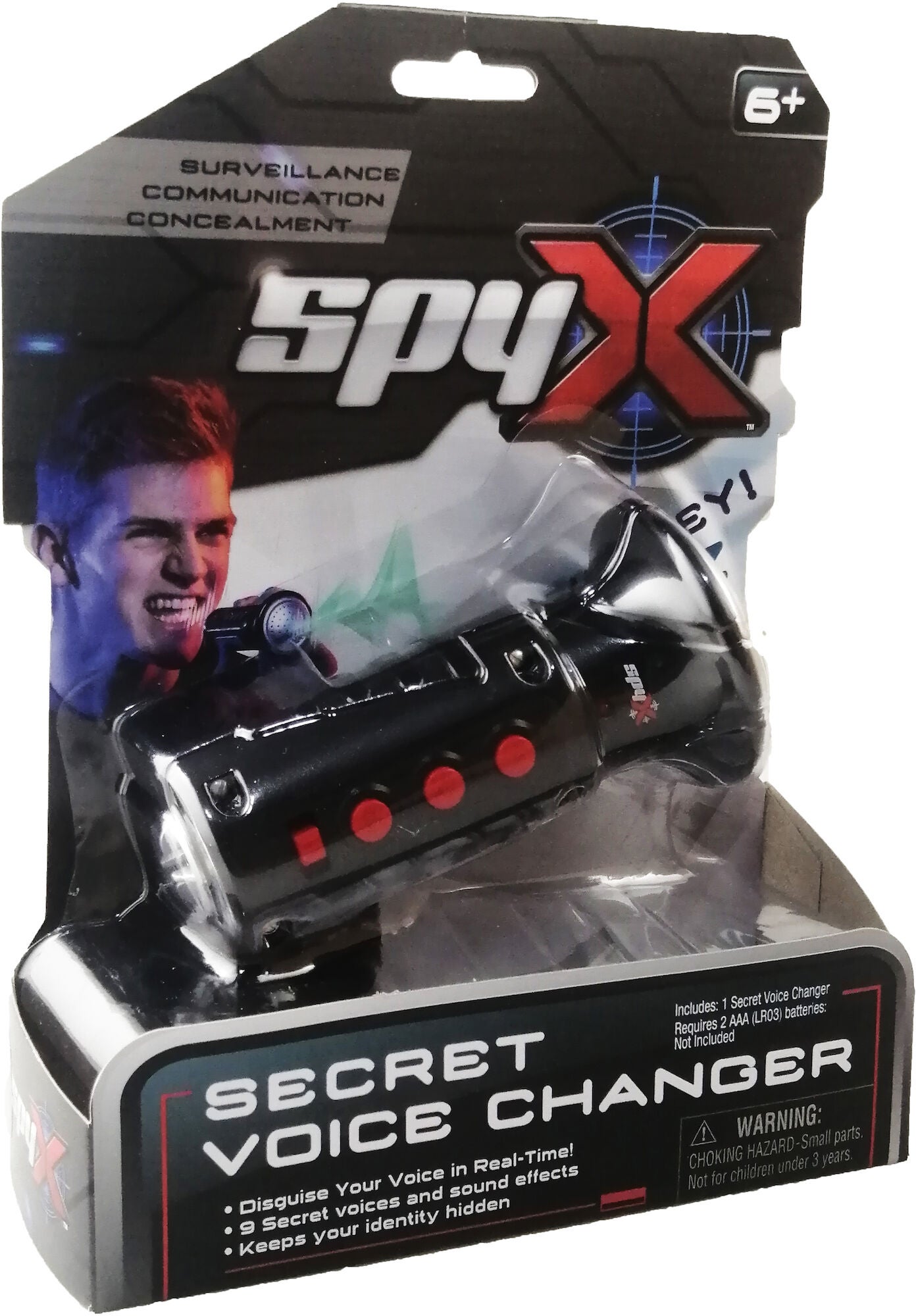 Stemmeforvrænger fra SpyX med ni forskellige tilstande, der forvandler din stemme, imens du taler. Vælg mellem forskellige stemmer som Darth Vader, et rumvæsen og mange andre, der kan bruges i dine spionopgaver. CE-mærket. Med 9 forskellige stemmer og lydeffekter. Anbefalet alder: Fra 6 år. Batteri: 2 x AA (medfølger ikke).