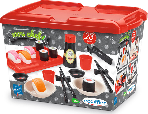 Sushiboksen fra Ecoiffier er ikke kun et fedt tilbehør til butikken eller legekøkkenet, men fremmer også finmotorikken, når børn forsøger at holde sushirullerne med spisepinde. Sættet...