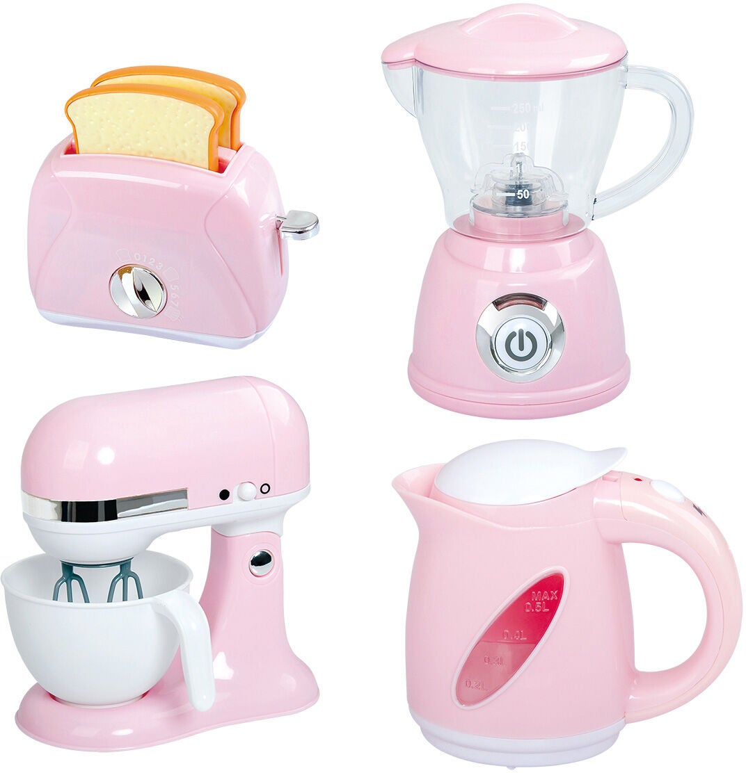 Køkkenredskabssæt fra Cloudberry Castle med fire køkkenmaskiner i flotte farver. Perfekt til timevis af fantasifuld leg. - Indeholder: 1 brødrister, 1 blender, 1 røremaskine, 1 kedel. - 4 dele. - Realistiske lydeffekter. - Brødrister: 15x7x13 cm. - Blender: 14 x 9 x 8 cm. - Bagemaskine: 10 x 10 x 8 cm. - Kedel: 16 x 9 x 16 cm. - Farverigt design. - CE-mærket. - Anbefalet alder: Fra 3 år. - Plastik. - Batterier medfølger ikke.
