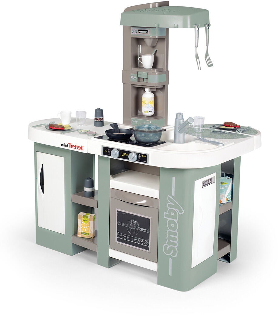 LuksuriÞst legekÞkken fra Smoby med mange hylder til opbevaring. Det har et komfur og en elektrisk funktion der fÃ¥r vandet til at boble og ”koge”. LegekÞkkenet har sjovt tilbehÞr. Her vil bÞrnene uden tvivl udvikle bÃ¥de fantasi og kreativitet gennem mange timers spÊndende leg. – Indeholder en stegepande, et spisesÊt og forskelligt legemad og tilbehÞr til kÞkkenet. – CE-mÊrket. – Anbefalet alder: Fra 3 Ã¥r. – Plastik, metal. – Batteri: 3 x AAA (medfÞlger ikke).
