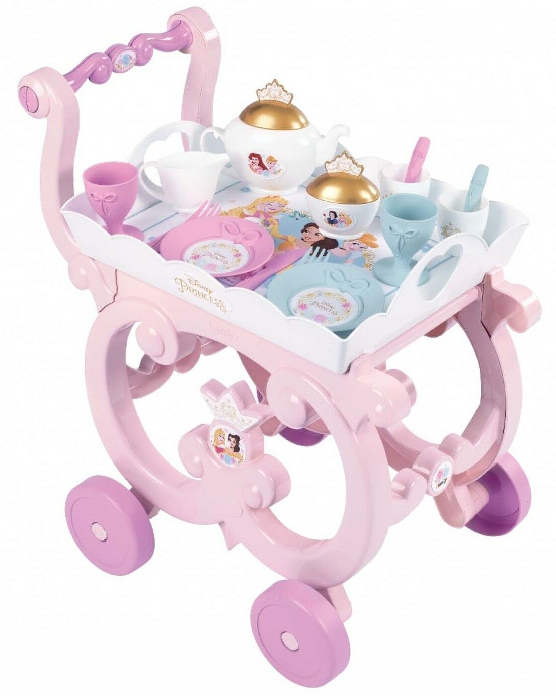 Tevogn fra Smoby med en glitrende, aftagelig bakke. Den har medfølgende tilbehør, så man kan holde skønne teselskaber med prinsessetema. Et musthave for alle små prinser og prinsesser. CE-mærket. Indeholder: 2 glas, 2 kopper, 1 tepotte, 1 mælkekande, 1 sukkerskål, 2 tallerkener, 2 knive, 2 skeer, 2 gafler. Anbefalet alder: Fra 3 år. Plastik.