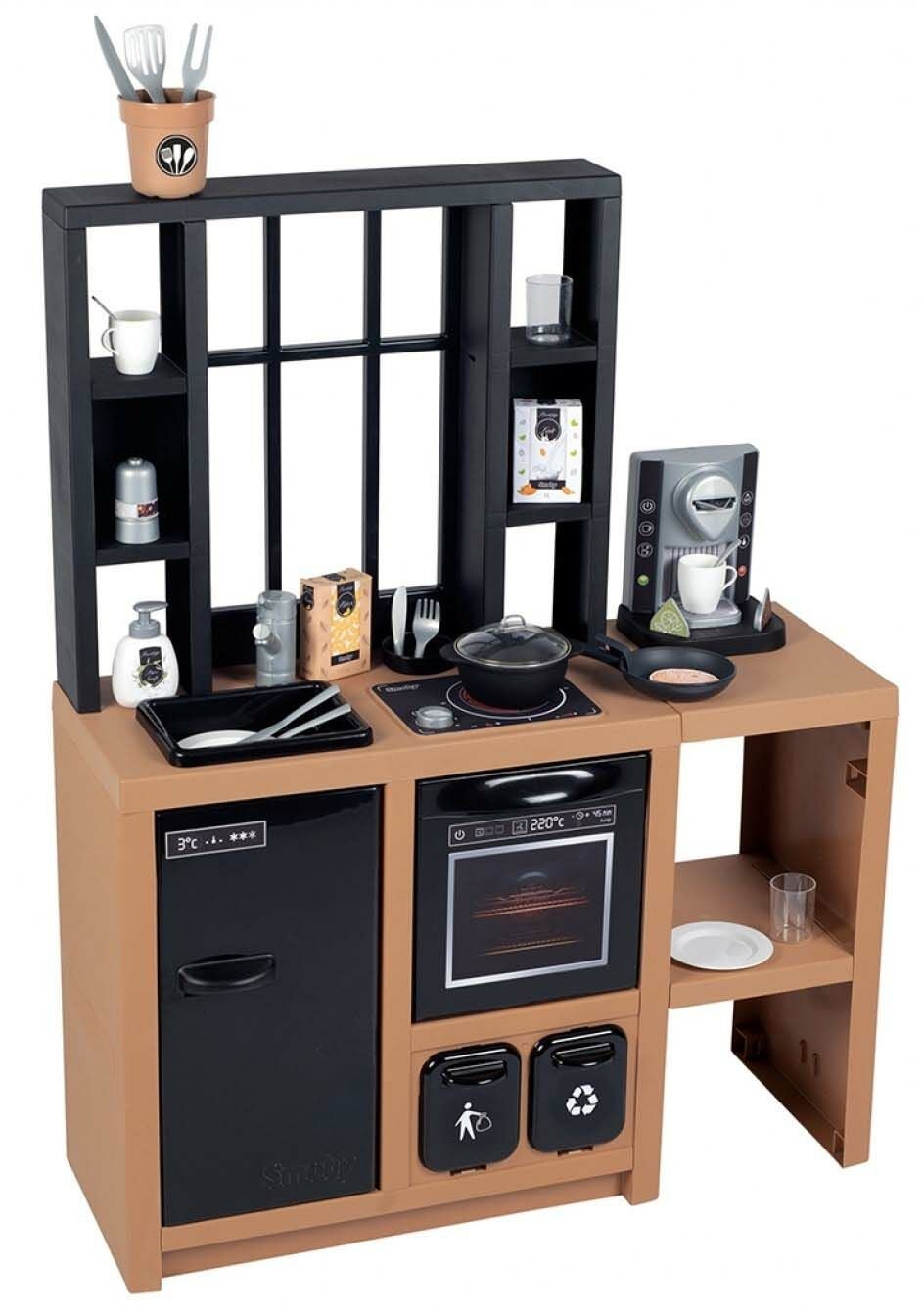 Legekøkken fra Smoby med et moderne design, der passer ind i alle børneværelser. Det har et komfur og en køkkenvask med hylder på toppen. Legekøkkenet har en ovn, et stort køleskab og en genbrugsstation. Det har medfølgende tilbehør, såsom køkkenredskaber, kopper, glas og pander. Perfekt til den lille kok! Indeholder: 1 legekøkken, 1 opbevaringshylde, 1 kaffemaskine, 5 køkkenredskaber, 2 gafler, 2 knive, 2 skeer, 2 tallerkener, 2 glas, 2 kopper, 1 stegepande, 1 salt- og pebersæt, 1 gryde, 3 madvarer. CE-mærket. Anbefalet alder: Fra 3 år.
