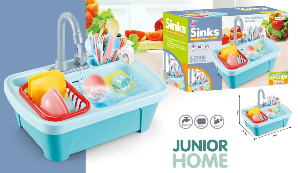 Med denne køkkenvask kan børnene vaske op under rigtigt rindende vand. Børnene vil hygge sig med rollelege, hvor de serverer mad til andre og bagefter sætter det beskidte service i vasken for at vaske det op. Basen skal bare fyldes op med vand, så vil van