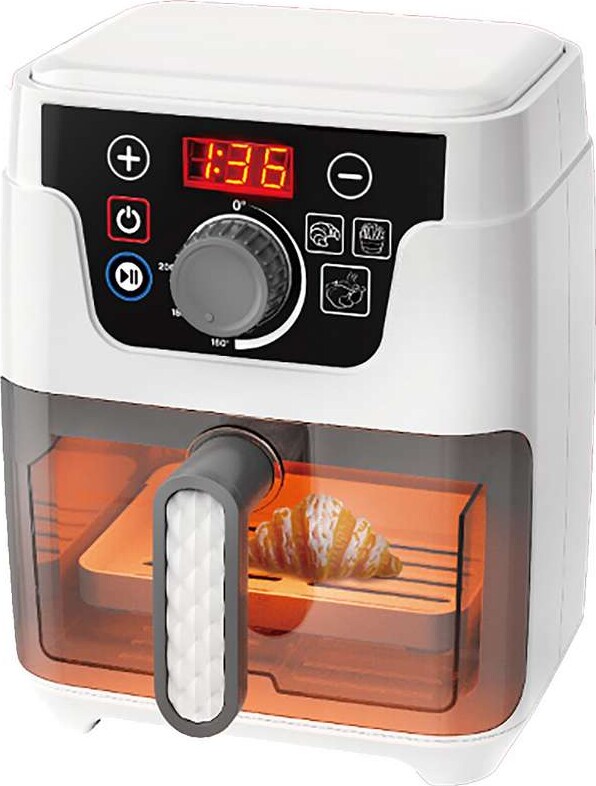 Airfryeren kommer med tilbehør samt forskellige funktioner. Maskinen er nem at betjene for selv de mindste børn. Der er tænd/sluk knap samt en start/pause knap.  16,5x16,3x20,5cm.