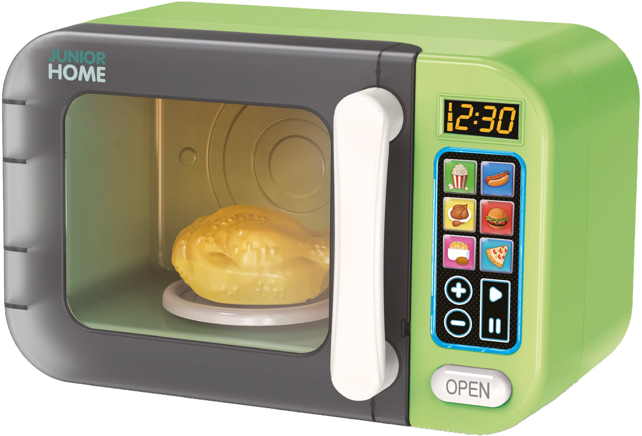 Mikrobølgeovn fra Junior Home med et inspirerende design. Den har realistiske lys- og lydeffekter og legemad med en sjov farveskiftende effekt. Perfekt til timevis af fantasifuld leg. - Indeholder: 1 mikrobølgeovn, 3 fødevarer. - Timer. - Bevægelige dele. - Lys- og lydeffekter. - Spændende farveskiftende effekt. - Passer perfekt ind i ethvert legekøkken. - Realistisk design. - CE-mærket. - Anbefalet alder: Fra 3 år. - Plastik. - Batterier medfølger ikke.