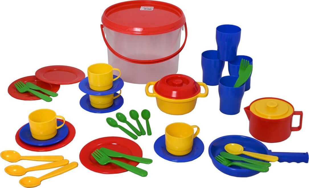 Dette plasto-køkkensæt leveres i en spand og rummer hele 39 dele alt hvad der skal til for at...