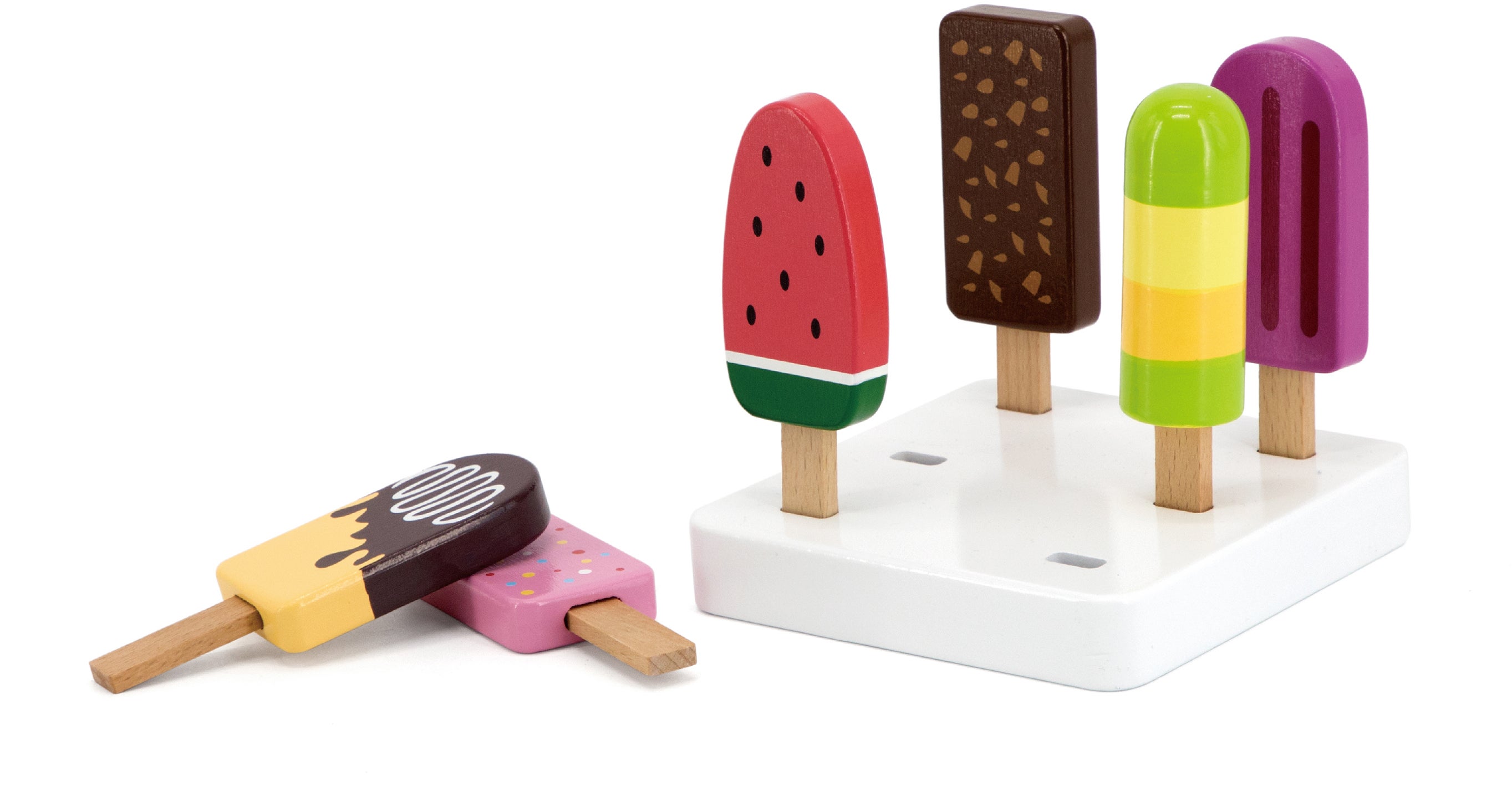 Pindeis-sæt fra VIGA med et detaljeret design i flotte farver. Perfekt til timevis af fantasifuld leg. - Indeholder: 6 ispinde, 1 stativ. - Detaljeret design. - Afrundede, glatte kanter. - Let at opbevare. - Let at rengøre med en fugtig klud. - 6 stk. - CE-mærket. - Anbefalet alder: Fra 3 år. - Træ.