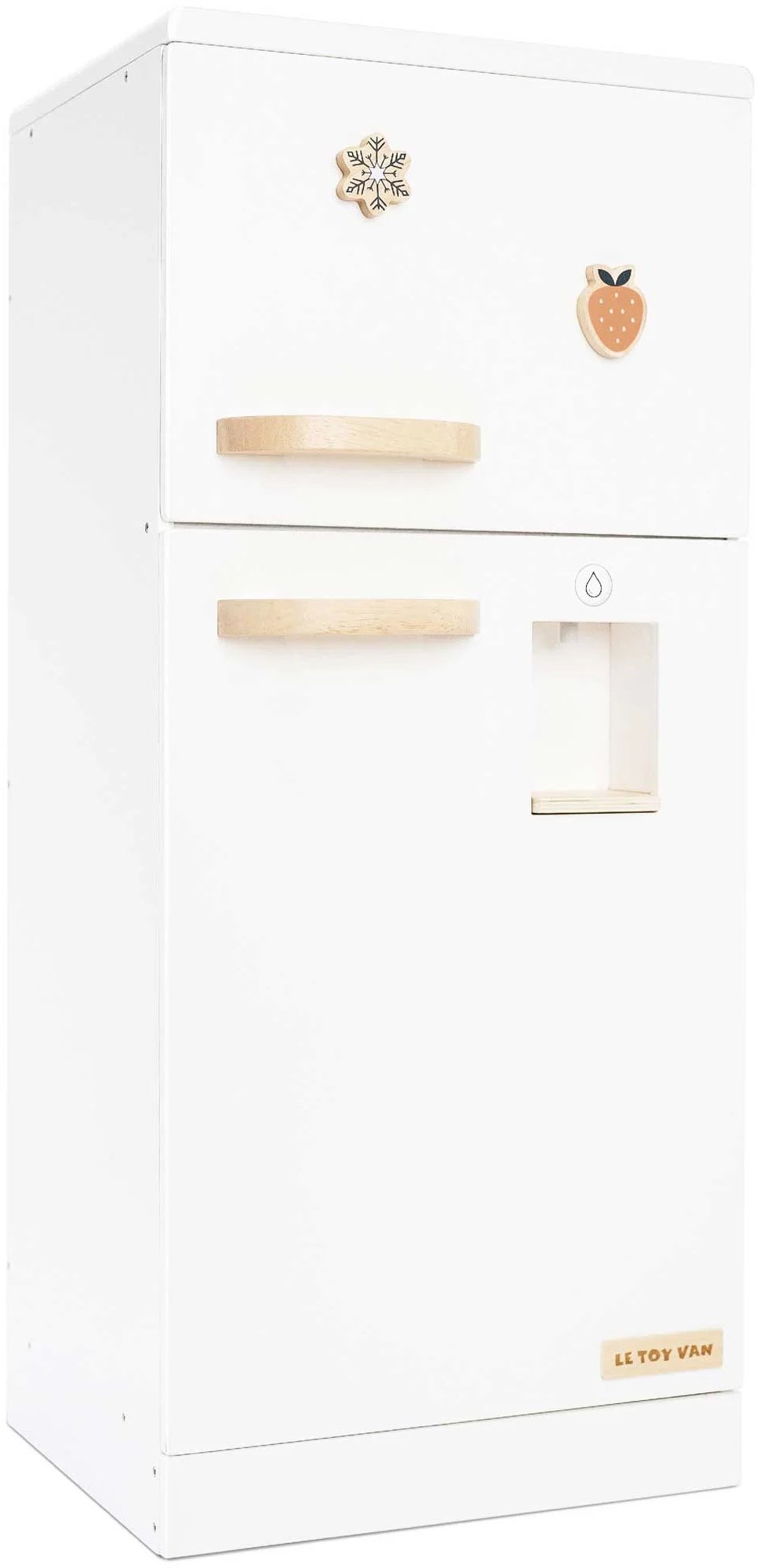 Køleskab fra Le Toy Van med et detaljeret design. Det har passende tilbehør. Perfekt til timevis af fantasifuld leg. - Indeholder: 1 køleskab, 2 ispinde, 1 modermælksflaske, 1 smoothie, 1 mini-isterningebakke, 1 æggebæger. - Kan kombineres med andre produkter fra serien. - Kan åbnes. - Bevægelige dele. - Udvikler kognitive og finmotoriske færdigheder. - Let at rengøre med en fugtig klud. - CE-mærket. - Anbefalet alder: Fra 3 år. - MDF, krydsfiner, gummitræ, tetræ, stål.