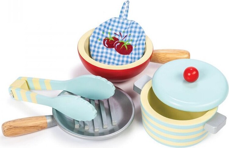 Flot gryde- og pande-sæt fra Le Toy Van til legekøkkenet. Sættet er lavet i træ og indeholder:...