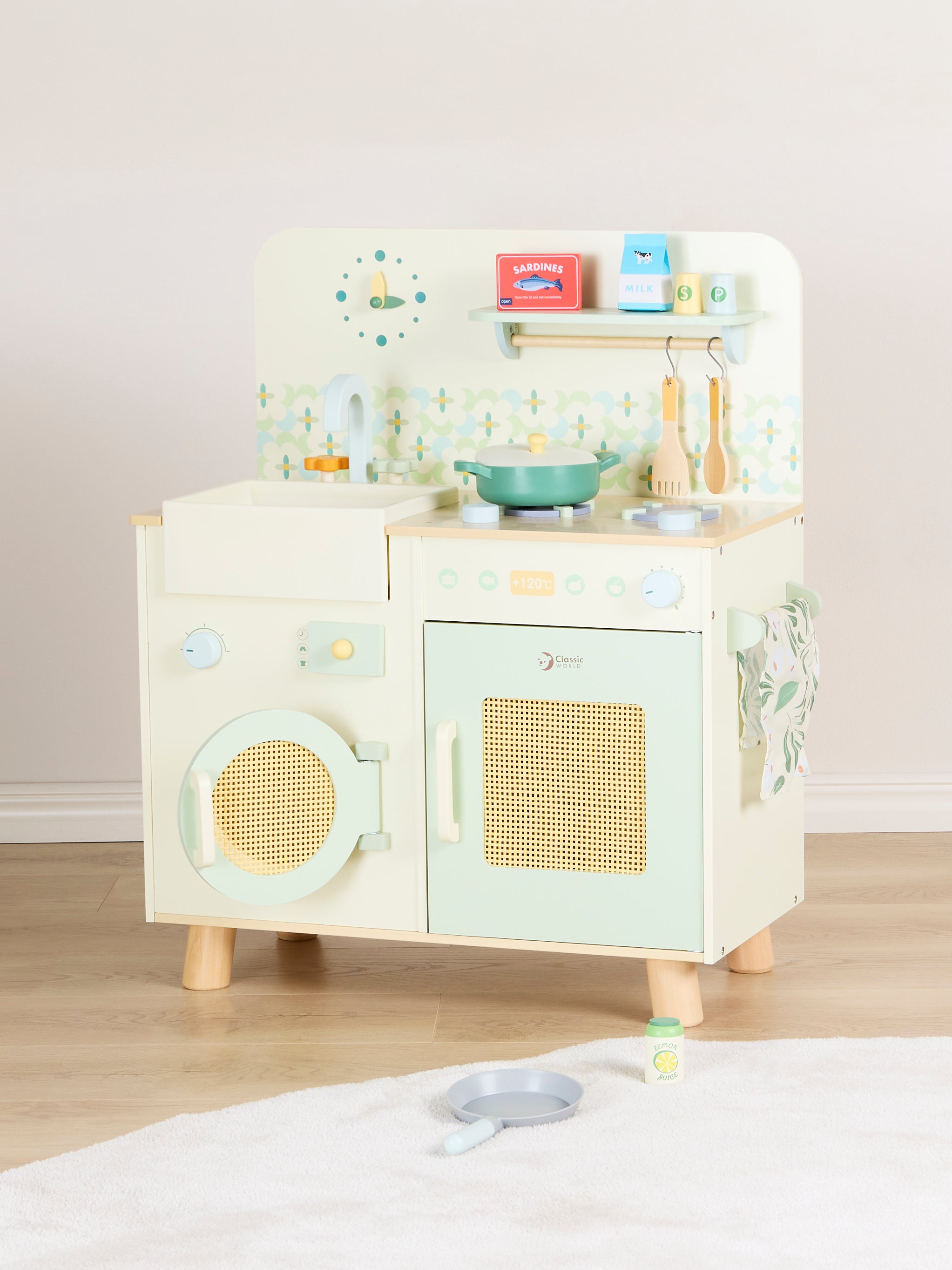 Dette Classic World Legekøkken i et smukt natural design bringer en verden af fantasifuld leg til dit barn. Med mange realistiske funktioner, er dette legekøkken perfekt til timevis af kreativ og sjov rolleleg. Det er designet til at stimulere børns fantasi og læring gennem leg.