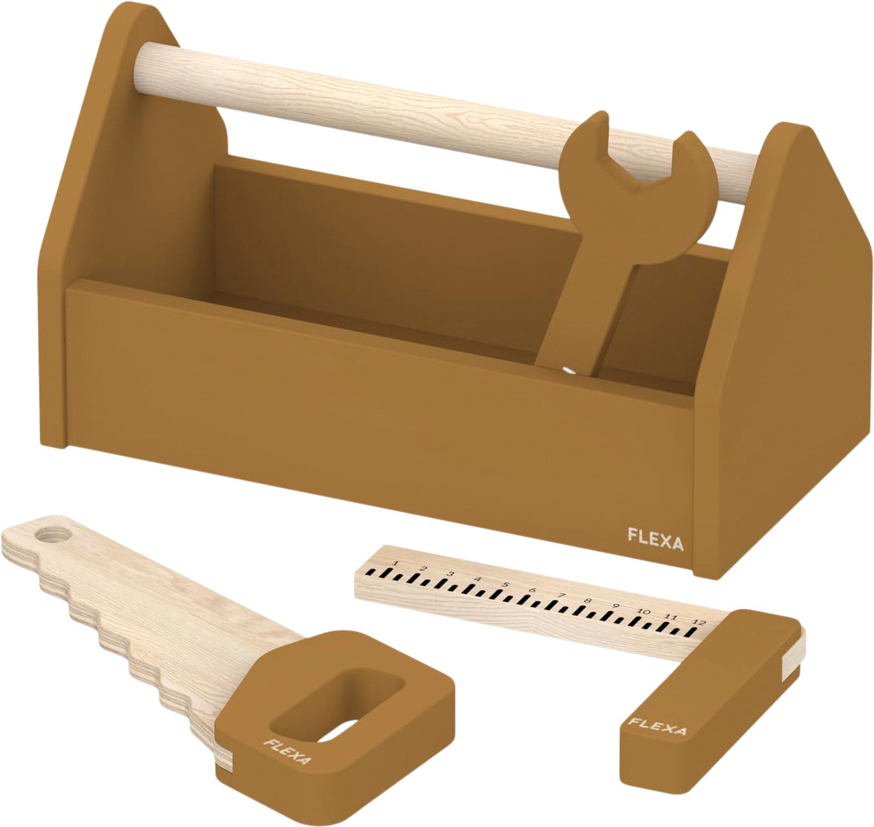 Forær din lille håndværker en værktøjskasse, så han eller hun kan gennemføre alle sine kreative projekter derhjemme. Denne værktøjskasse er udstyret med en sav, en skruenøgle og en firkantet lineal - værktøjer, der alle styrker dit barns finmotorik, hånd-