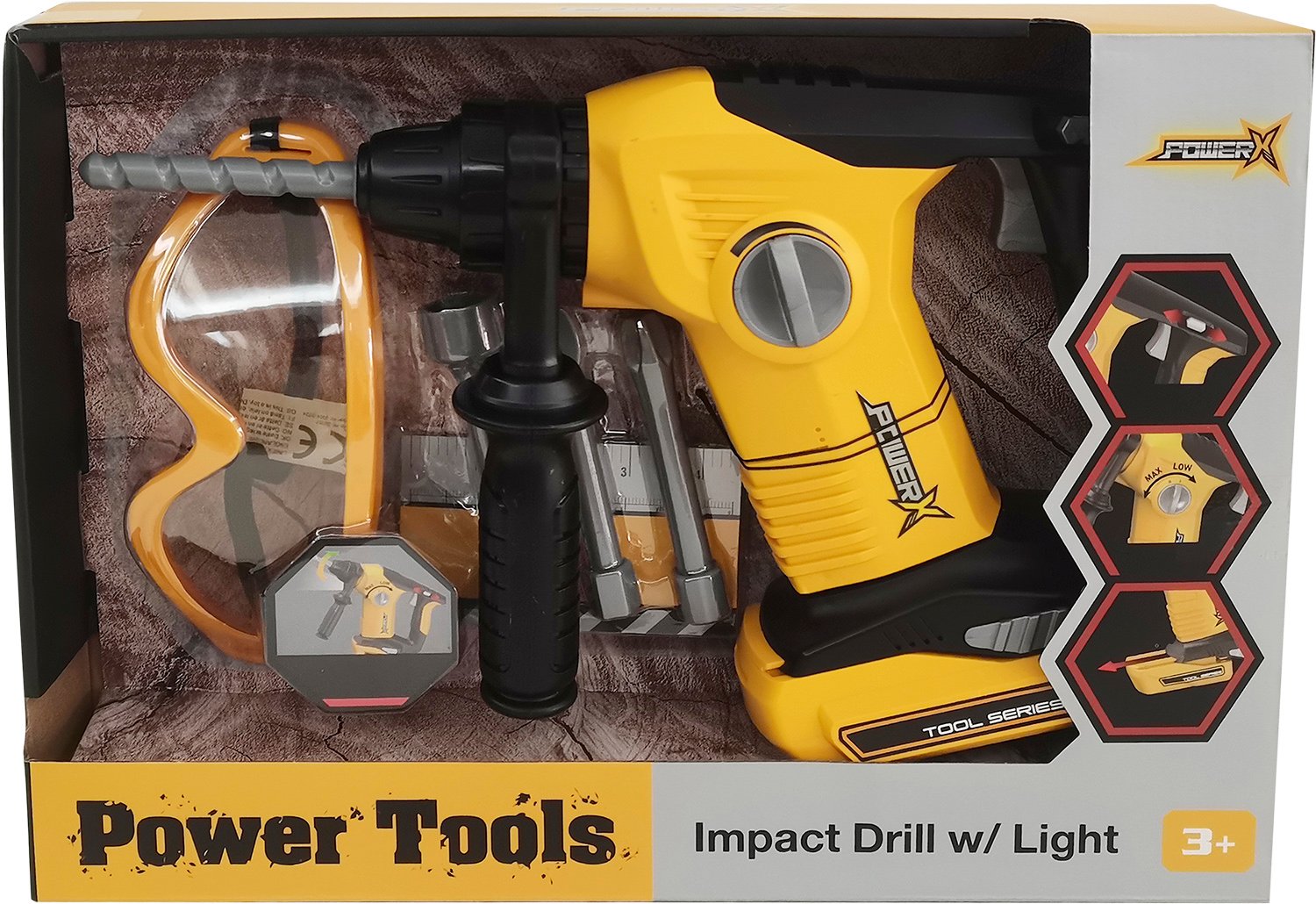 Dit barn kan blive en rigtig håndvęrker med den batteridrevne slagboremaskine fra Power X Slagboremaskinen leveres med sikkerhedsbriller og et målevęrktųj Slagb oremaskinen fungerer som en rigtig boremaskine med både lys og lyd Dette håndvęrktųj er et mus