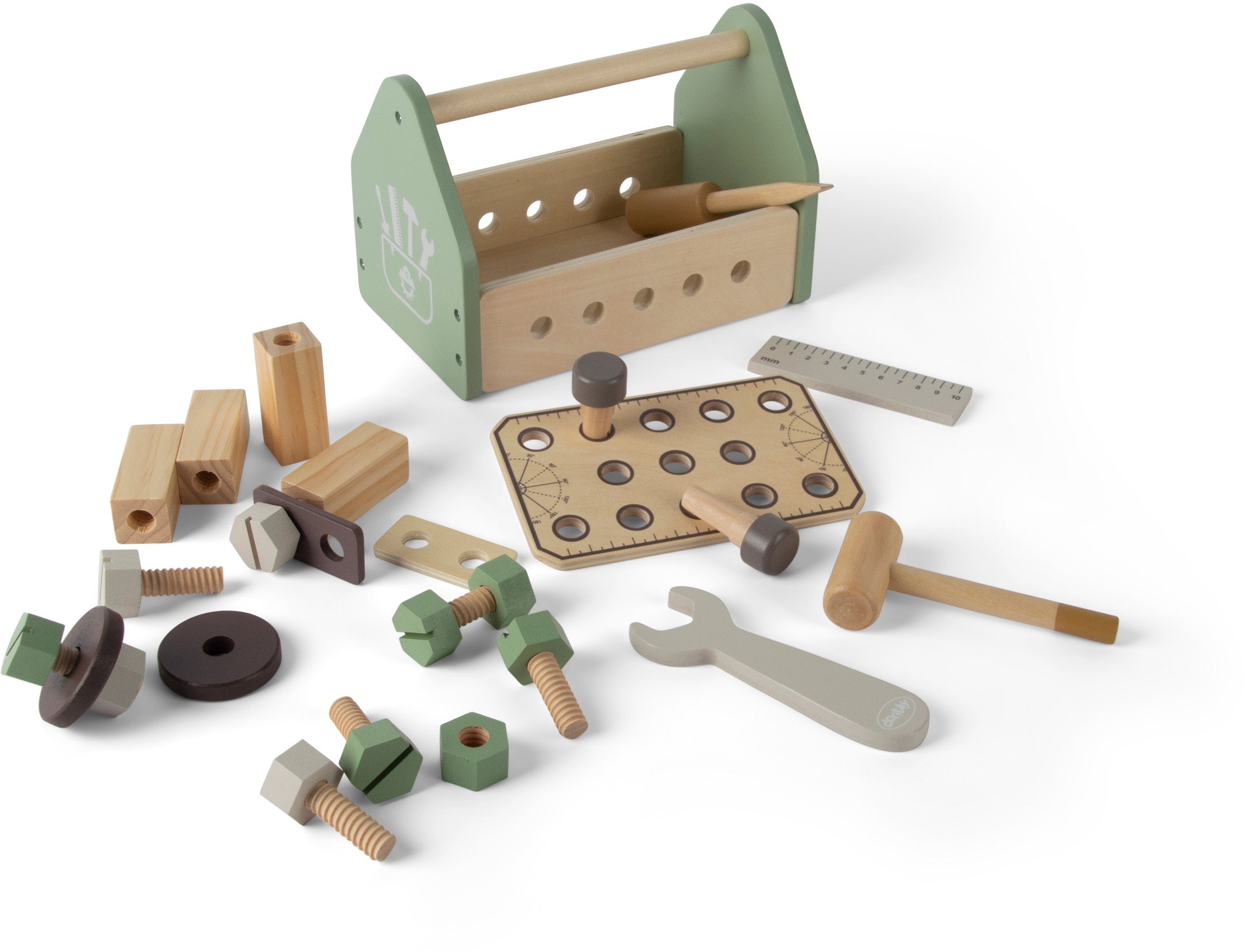 Værktøjskasse fra Dantoy med mange sjove værktøjer. Perfekt til mange timers kreativ leg og læring. - Indeholder: 1 værktøjskasse, 1 hammer, 1 skruenøgle, 1 skruetrækker, 1 lineal. - Brug værktøjerne med de medfølgende skruer, bolte og træklodser! - Lær, hvordan værktøjerne fungerer, og hvordan de bruges. - Udvikler kognitive og finmotoriske færdigheder. - Underholder og stimulerer dit barn. - Mål: H 13 x B 15 x L 21 cm. - CE-mærket. - Anbefalet alder: Fra 3 år. - Træ.