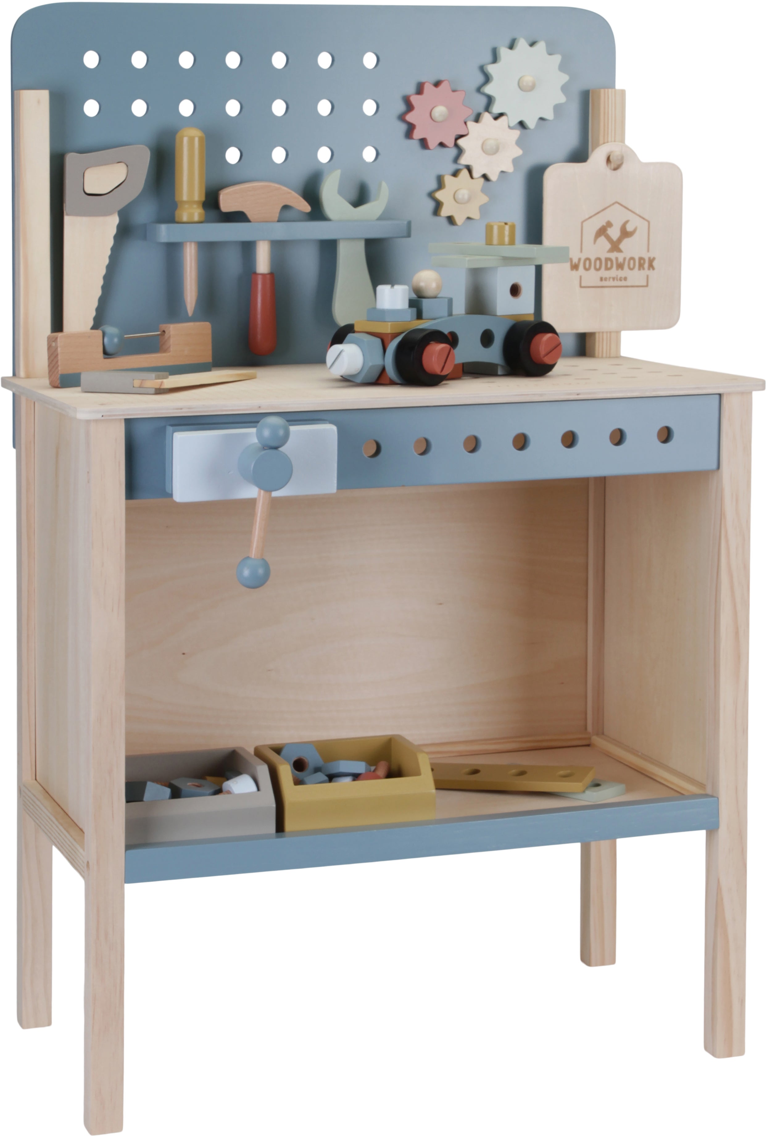 Arbejdsbænk fra Little Dutch i flotte farver med mange forskellige værktøjer i træ. Perfekt til timevis af fantasifuld leg. - Antal dele: 48. - Sættet indeholder en hammer, en skruenøgle, en skruetrækker, møtrikker, bolte og mange andre spændende ting. - Robust. - Stort legeområde. - Til sjov og fantasifuld rolleleg. - CE-mærket. - Anbefalet alder: Fra 3 år. - FSC-certificeret træ.
