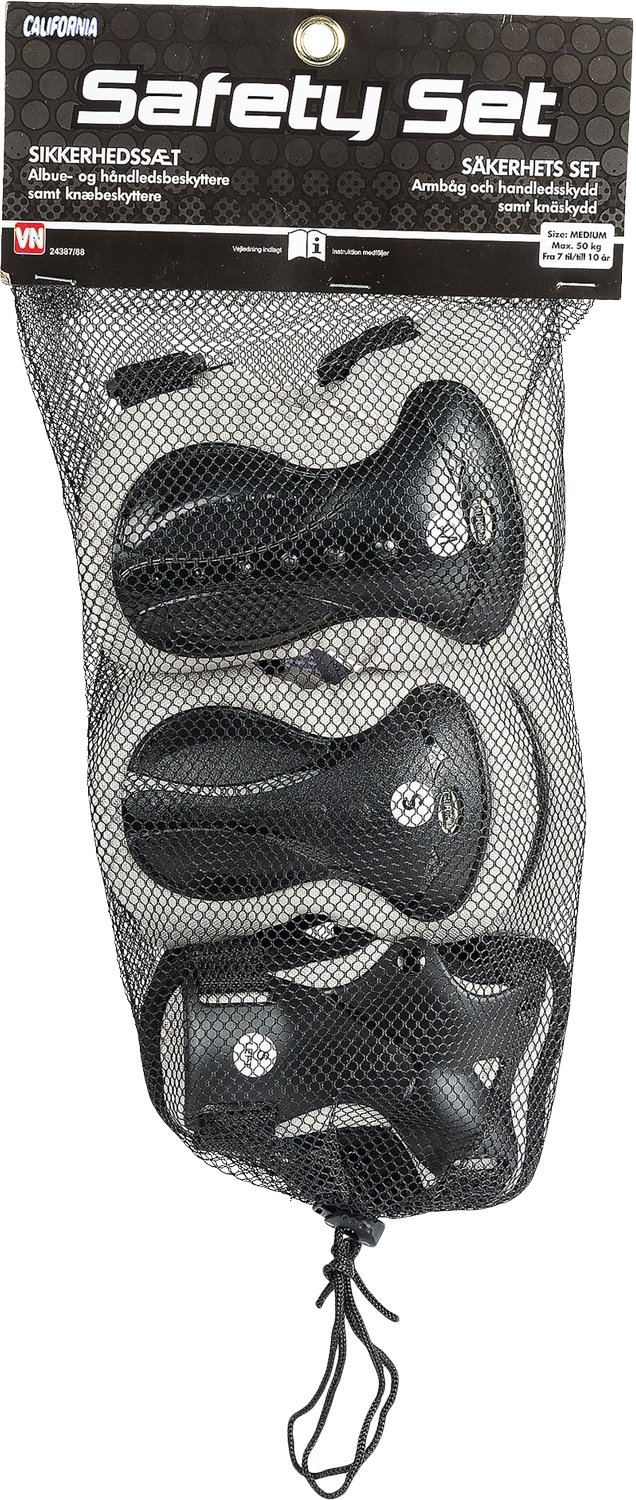 California Pro sikkerhedssæt Med håndleds-. albue- og knæbeskyttere i praktisk net Str M (7-10 år)