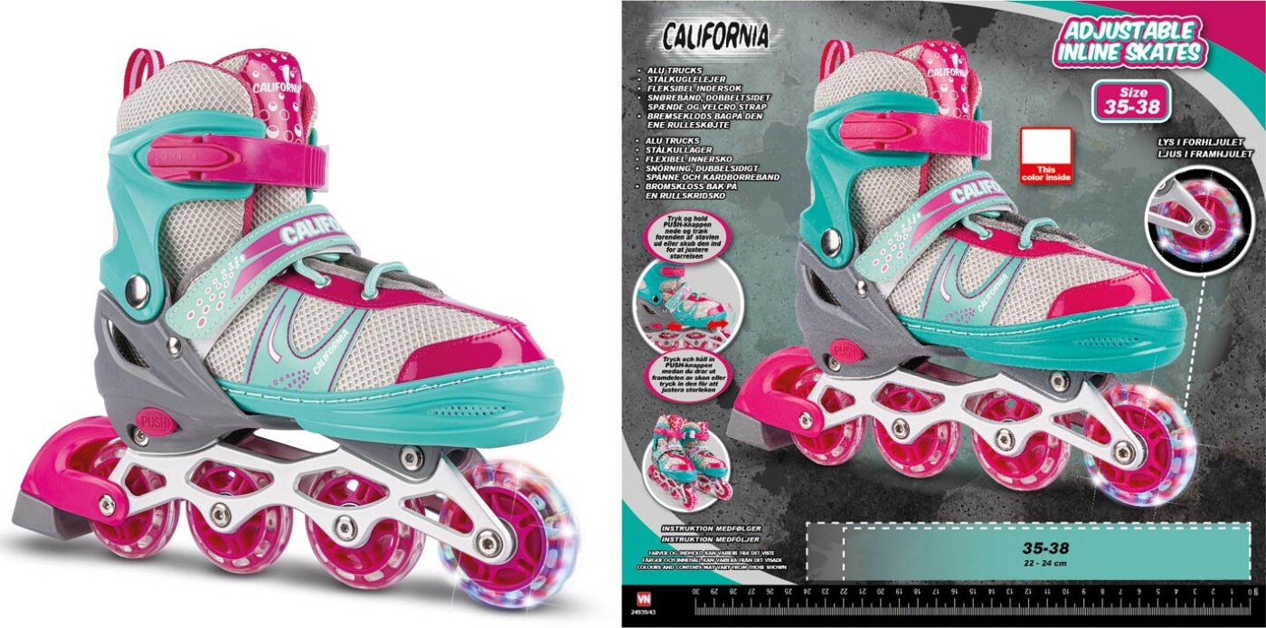 Disse flotte inliners rulleskøjter er designet i grønne og lyserøde nuancer og passer til...