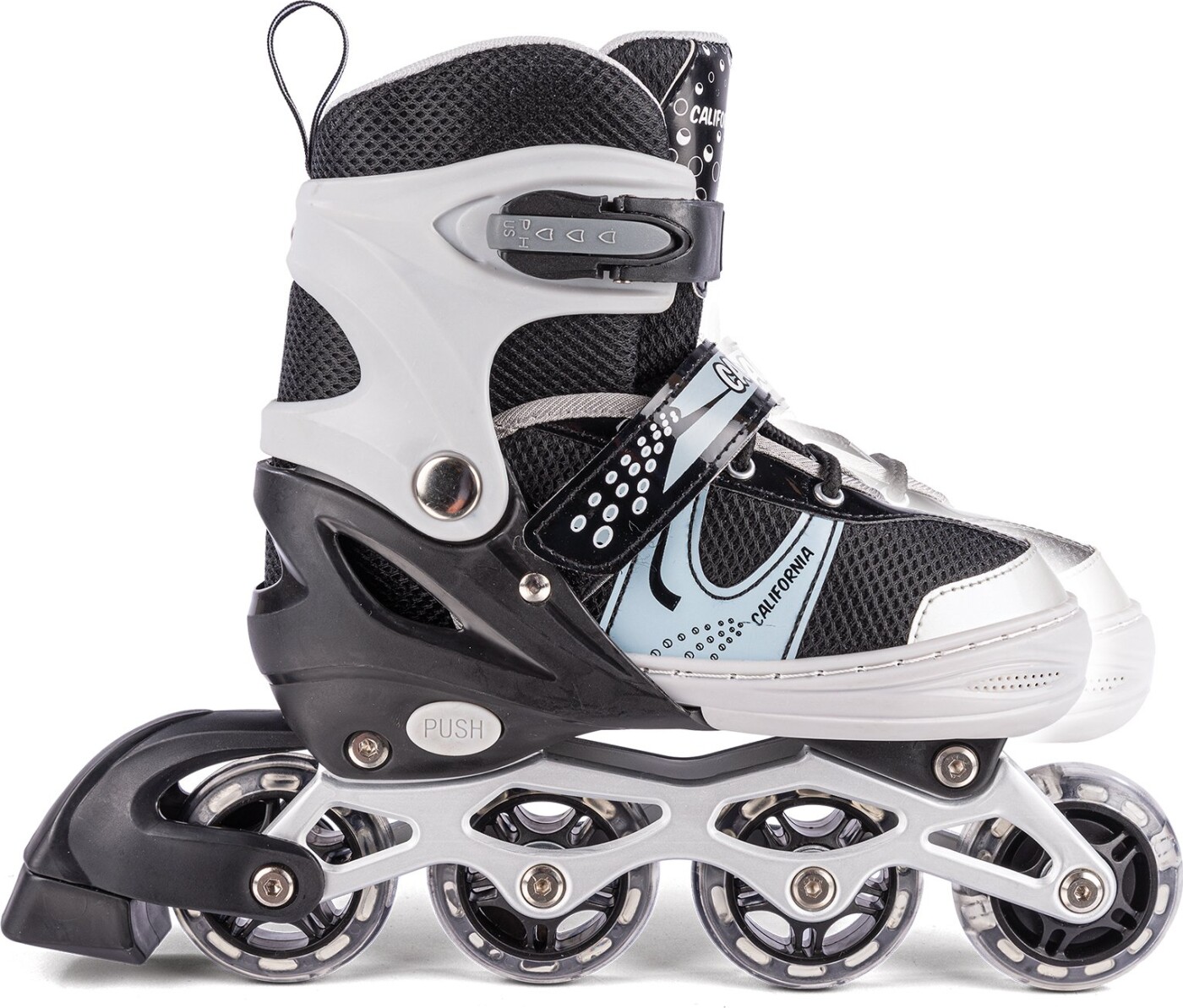 Disse flotte inliners rulleskøjter er designet i monokrome nuancer og passer til fodstørrelser...