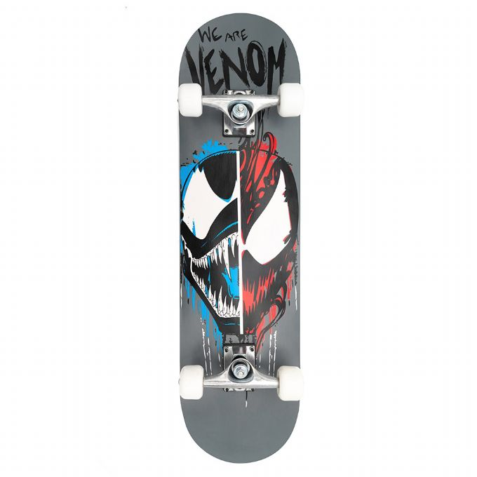 Et træskateboard dekoreret med Venom. Den er ideel at bruge på fortove, pladser og gader. Brættet er lavet af slidstærkt træ og har en skridsikker overflade, der giver trækkraft og øger sikkerheden. Teknisk data: Bræt: 9-lags ahorntræ Hjul: polyureth