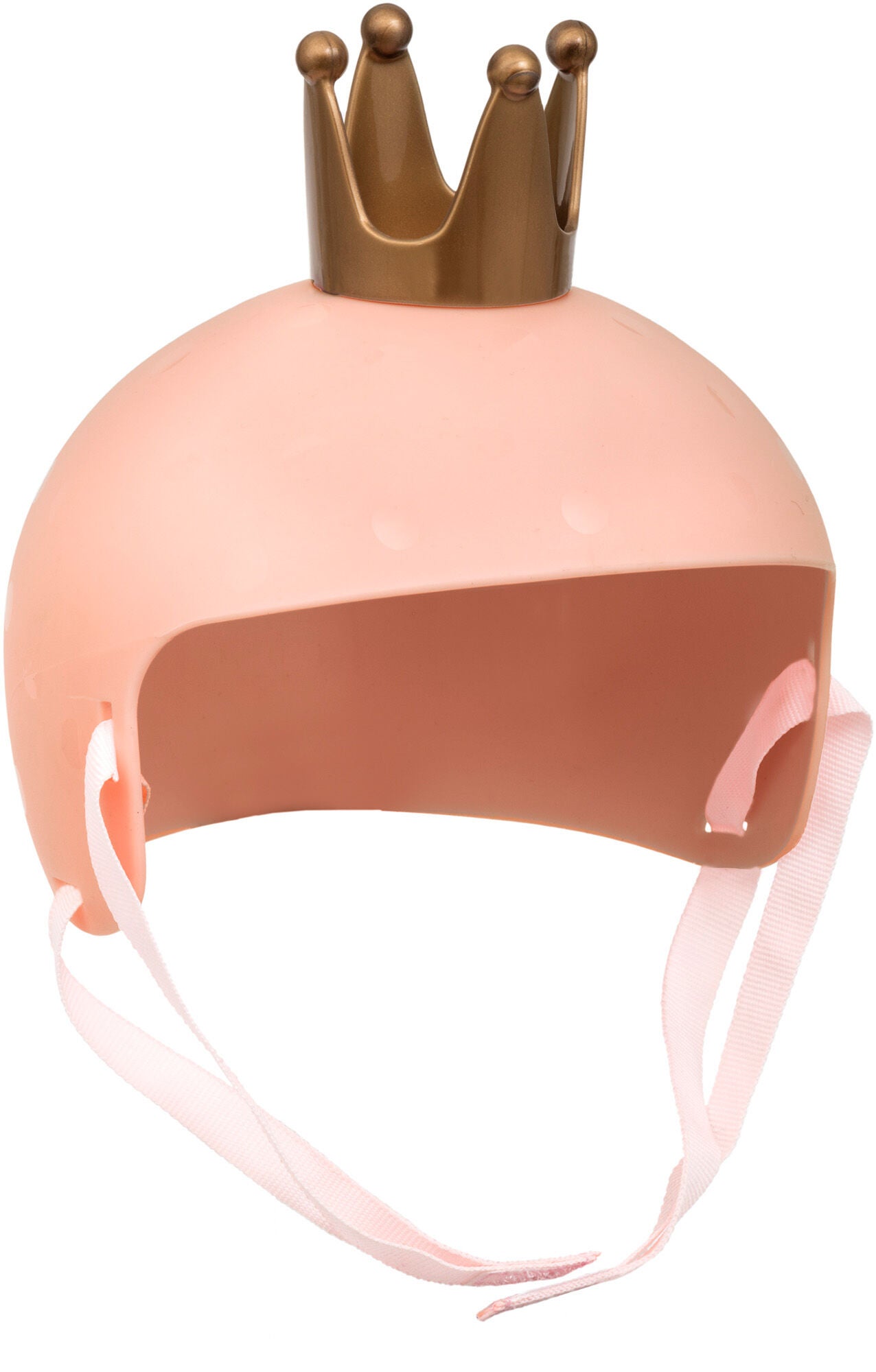 Cykelhjelm fra Skrållan med en guldfarvet krone på toppen. Den har en praktisk velcrolukning for let på- og aftagning. Perfekt til timevis af fantasifuld leg. CE-mærket. Anbefalet alder: Fra 3 år. PVC-fri plast, polyester.