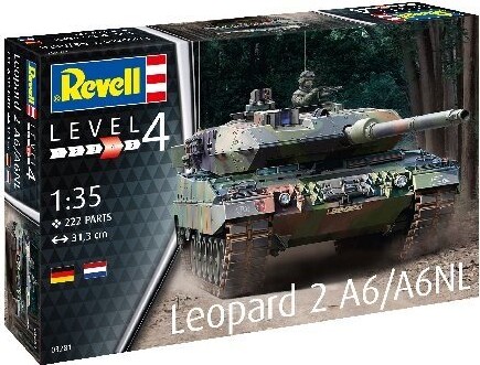 Leopard 2 A6/A6NL Et modelbyggesæt af den moderne Leopard 2 A6, som stadig anses for at være en af de bedste hoved-kampvogne i verden. A6-versionen med sin 1,3 m længere kanon bruges ikke kun af...