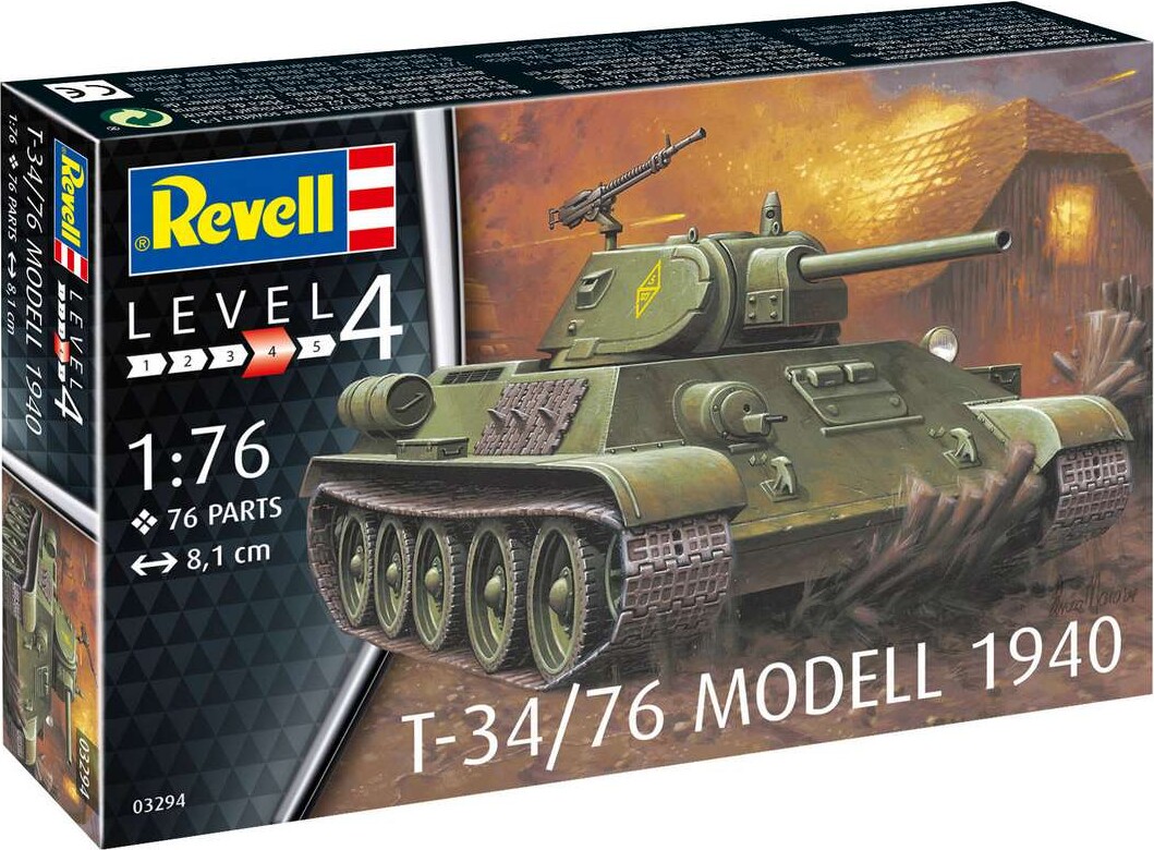 Revell - T-34 Modell Tank Byggesæt - 1:76 - Level 4 - 03294