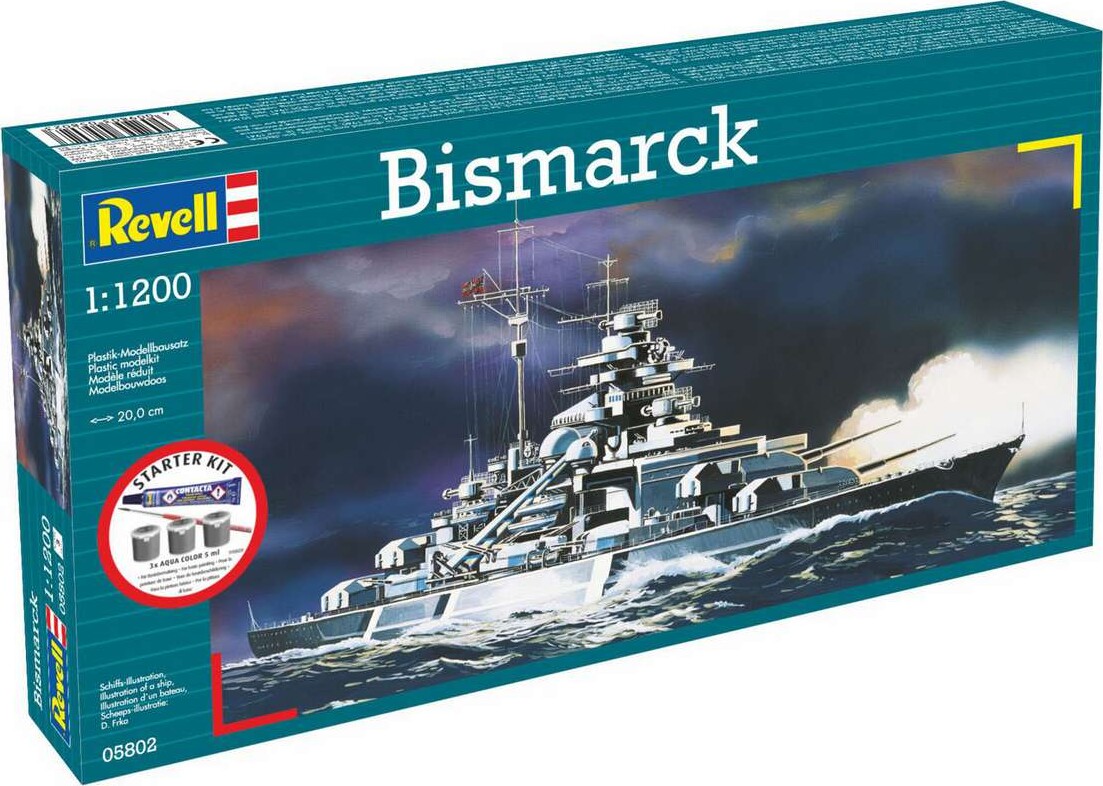 Tag del i historien med Revell - Bismarck Starter Kit. Dette detaljerede model byggesæt i skala 1:1200 giver dig mulighed for at genskabe det berømte slagskib Bismarck, som har en central plads i maritime historiebøger. Uanset om du er en erfaren modelbygger eller nybegynder, vil dette sæt inspirere til kreativitet og teknisk kunnen.