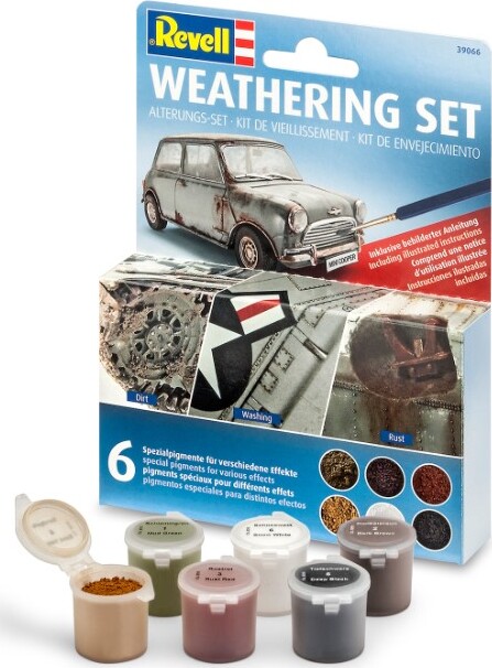 Forvandl dine modelbyggerprojekter med Revell - Maling Sæt - Weathering, der indeholder 6 nøje udvalgte pigmenter. Dette sæt er ideelt til hobbyister, der ønsker at tilføje realistiske vejringsdetaljer til deres modeller.
